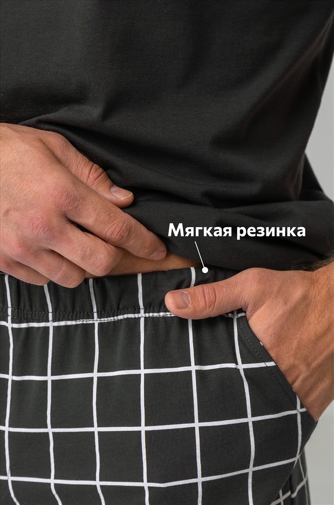 Футболка прямого кроя не стесняет движения, а свободные штаны сделают сон и домашний досуг максимально комфортными. В трикотажной пижаме с принтом в клетку вы будете чувствовать себя очень свободно и уютно дома, на даче или на отдыхе. Трикотажную пижаму для мужчин можно взять с собой в путешествие, чтобы насладиться комфортом в отпуске. Комплект двойка станет отличным подарком для близкого человека.