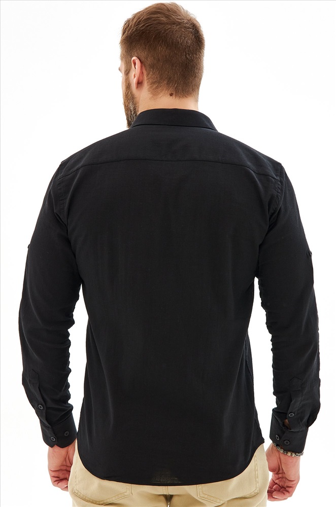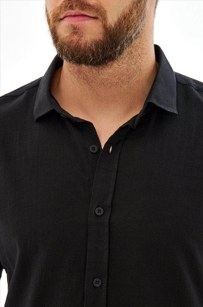 Однотонная рубашка подойдет для офиса, учебы и официальных мероприятий. Льняная сорочка для мужчин станет крутой базой на каждый день. В классической черной рубашке будь безупречен в любой ситуации!