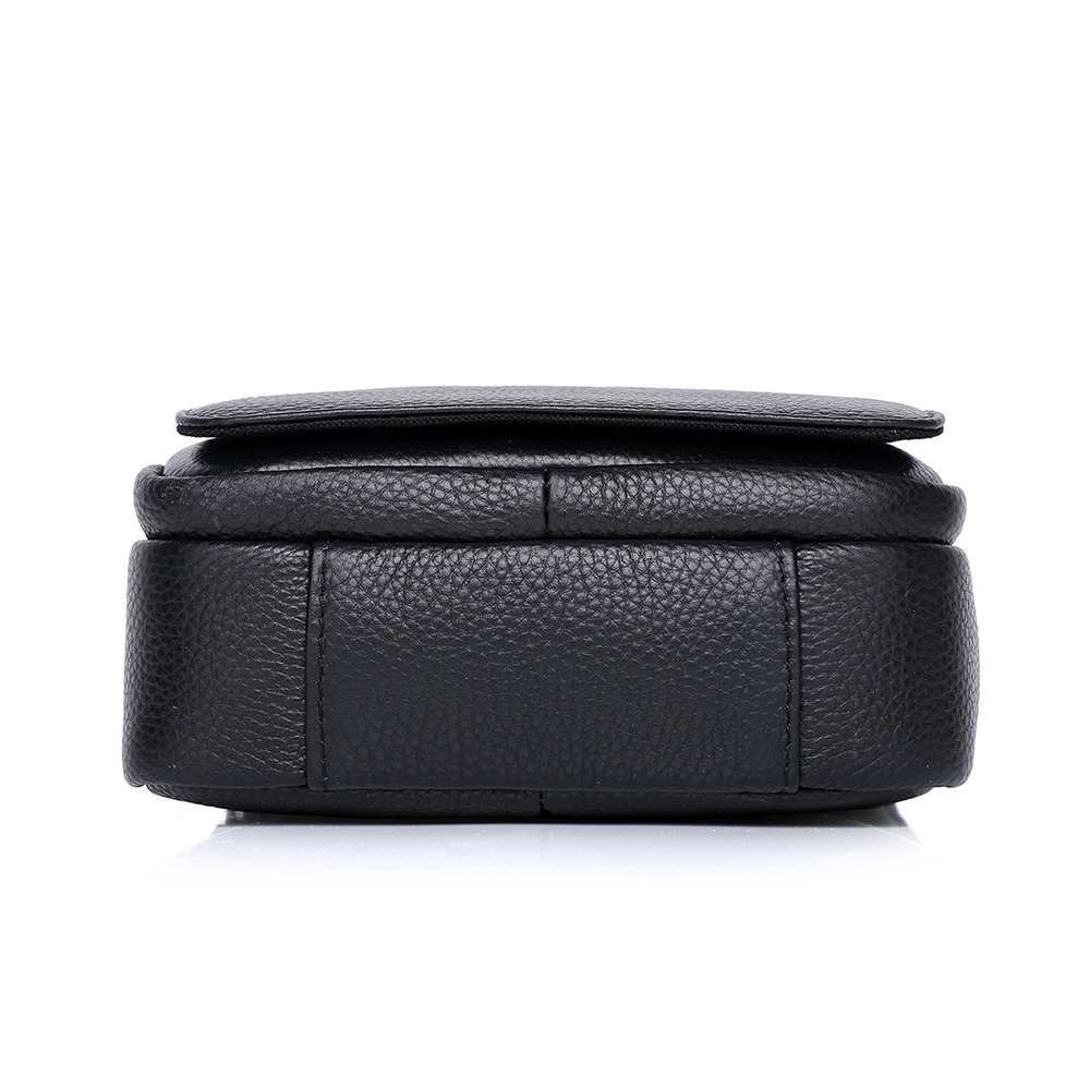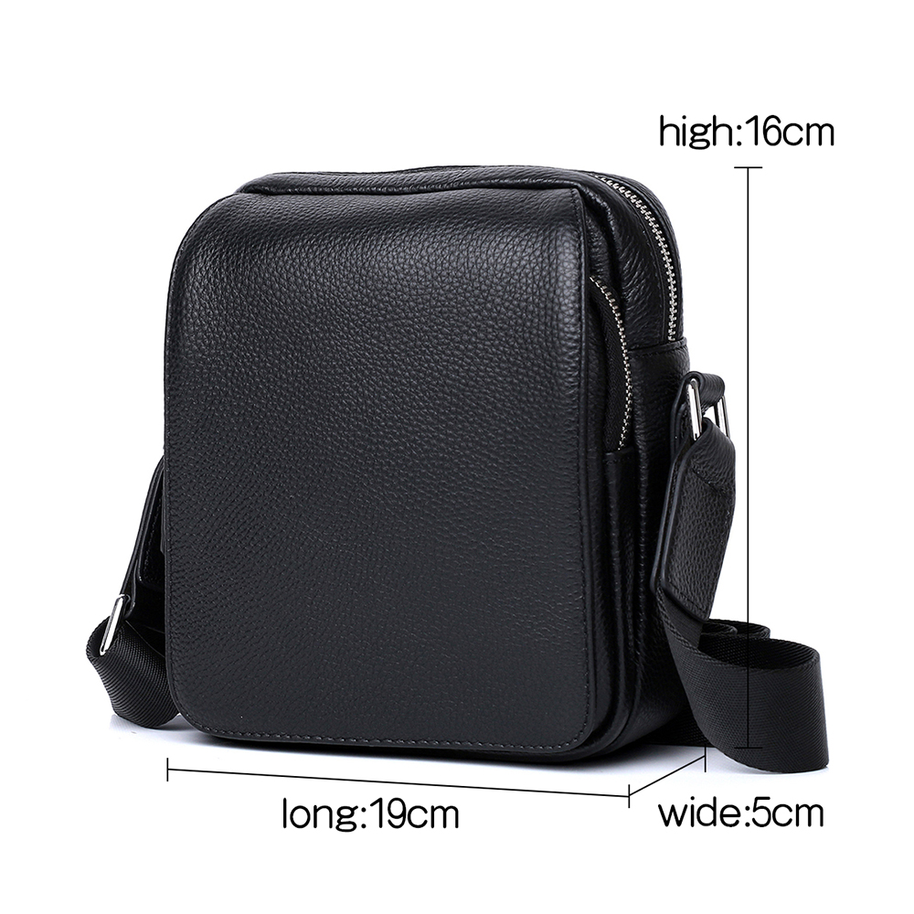 Классическая мужская сумка на плечо MIRONPAN выполнена из натуральной зернистой кожи в черном цвете. Основное отделение закрывается на полукруглую молнию с кожаным поводком. Внутри есть 2 боковых кармана для мелочей: открытый и на молнии. На лицевой стороне под клапаном расположен вместительных кармана на молнии, на тыльной стороне также предусмотрен карман быстрого доступа на молнии. Плечевой ремень регулируется по длине, ширина - 4 см.