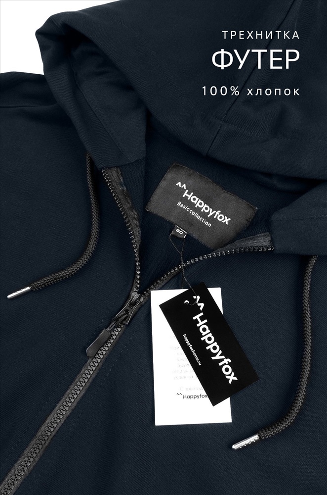 Производитель: Happyfox; Бренд: Happyfox; Страна: Узбекистан; Состав: 100% хлопок; Материал: Футер трёхнитка; Плотность ткани: 270 г/м2; Цвет: т.синий