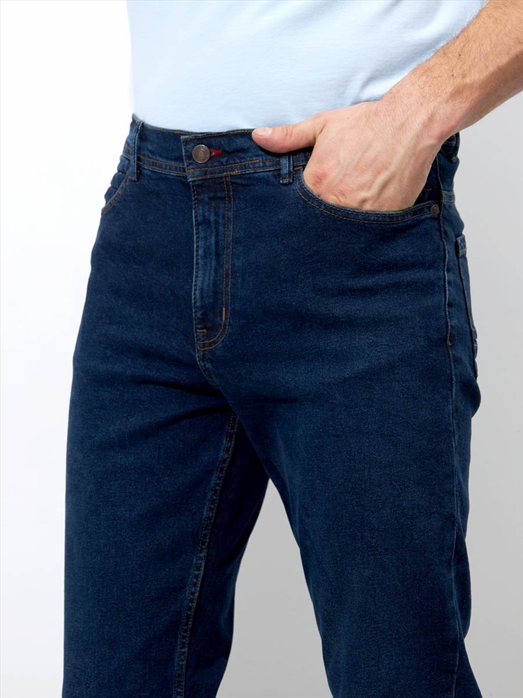 Цвет: стирка темная; Состав: 99%Хлопок, 1%Эластан; Материал: Blue denim 007 str.; Вес материала: 12.1; Фит: Regular fit; Талия спереди: высокая; Талия сзади: высокая; Ширина колена: 22см; Ширина низа: 21см; ID: 246024