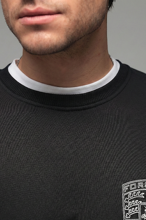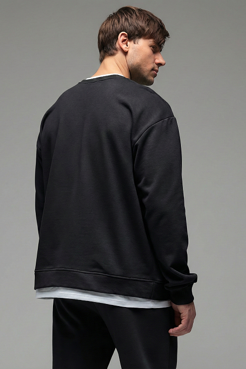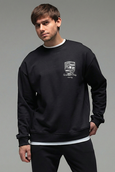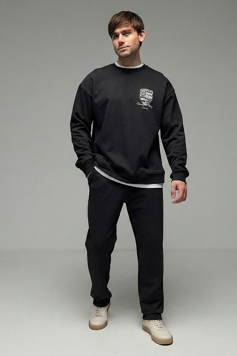 Материал: Футер 3х нитка петля; Состав: 60% вискоза, 40% полиэстер; Застежка: Без застежки; Длина рукава: Длинный рукав; Размерный ряд: 48-58; Цвет: Черный; Тип рисунка: Надписи