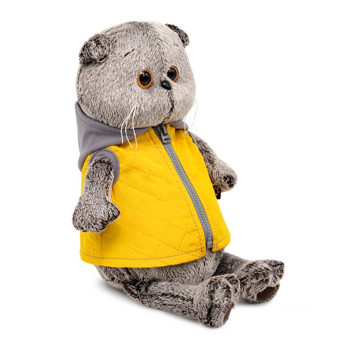 Мягкая игрушка «Басик» в желтой жилетке с серым капюшоном, 22 см