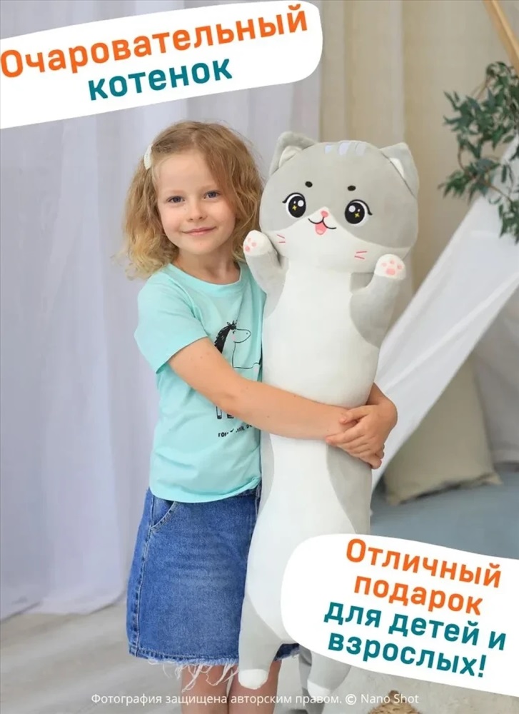 Мягкая игрушка-обнимашка Милая кошечка серая, 110 см — это идеальный подарок для детей, взрослые будут в восторге от котика тоже!