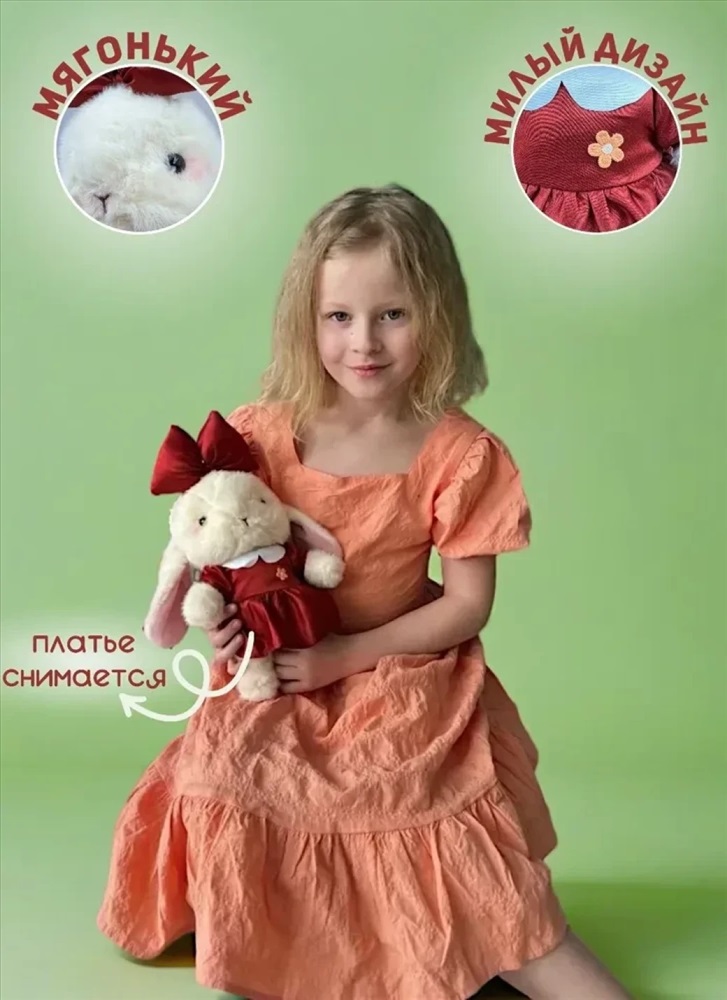 Не забывайте, что такой милый подарок способен украсить любой праздник, будь то день рождения или Новый год. Плюшевый кролик станет не только игрушкой, но и стильным элементом декора детской комнаты. Его светло-бежевый цвет и изящное платье прекрасно впишутся в любой интерьер, добавляя ему нотку нежности и уюта.