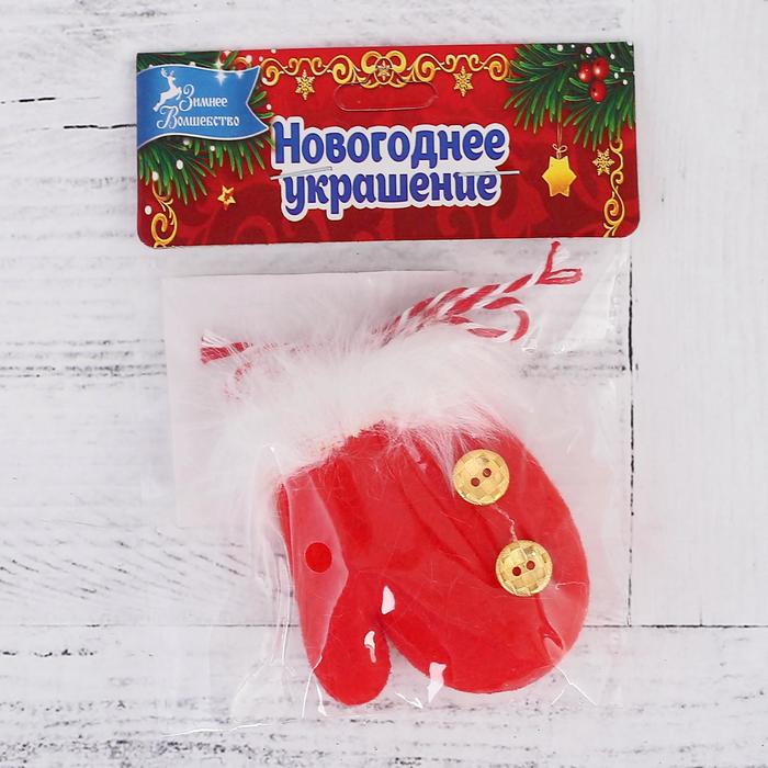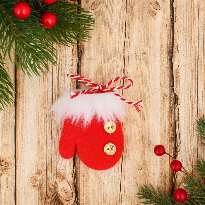 Подвеска мягкая на ёлку «Варежка пушистая с пуговками» 7.5×6 см, бело - красная