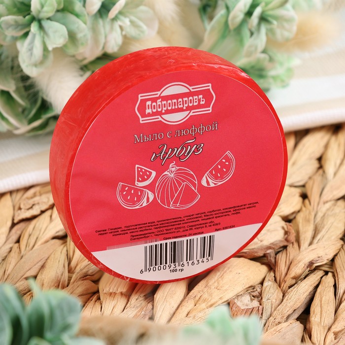 Производитель: Добропаровъ; Габариты: 7,5 x 7,5 x 2; Страна: Россия; В боксе: 50 шт; Состав: См. на упаковке; Материалы: см. на упаковке; Фасовка: по 1 шт; Индивидуальная упаковка: Полиэтиленовая пленка; Сертификат: ЕАС; Цвет: Красный; Вес, г/Объём, мл: 100; Вид упаковки: Термоусадочная плёнка; Тематика праздника: Универсальная тематика; Область применения: Для тела, Для рук; Аромат: Арбуз; Тип: Твёрдое; Вид мыла: Скраб-мыло; Фиксированная цена: Да