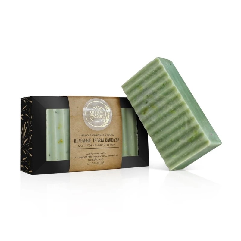 Мыло богато масляными вытяжками целебных трав Кавказа, которые славятся своим противовоспалительным свойством, делая процедуру очищения максимально комфортной. В сочетании с вытяжкой тамбуканской грязи предупреждает появление высыпаний, прыщей и комедонов, бережно и глубоко освобождает эпидермис от закупоривания.
