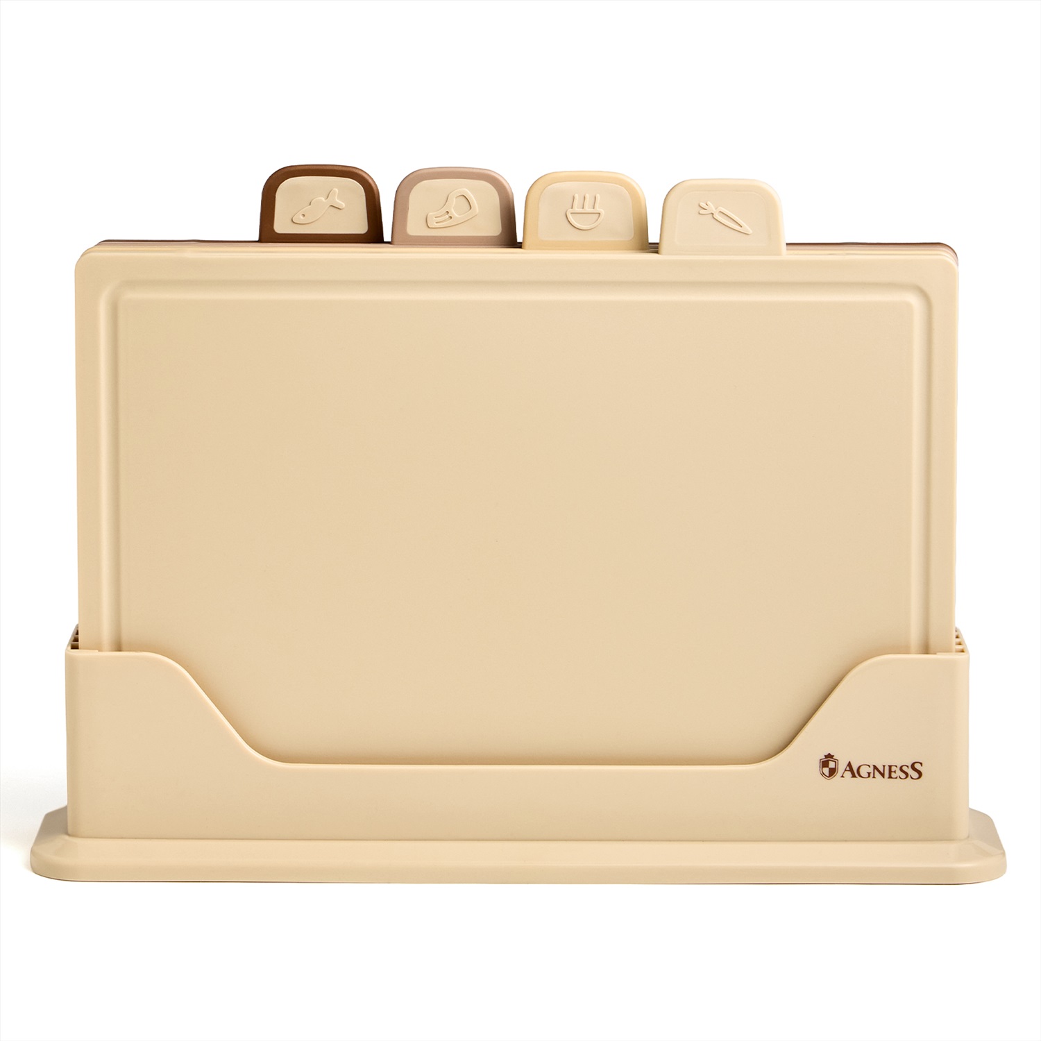 Набор разделочных досок состоит из четырёх разноцветных досок , размещенных в оригинальной подставке, что делает набор не только многофункциональным, но и очень удобным для хранения на кухне. Цветные разделочные доски выполнены из прочного пищевого пластика и могут использоваться для нарезки сырого мяса и рыбы, овощей, фруктов, варенных и копченых продуктов, хлеба и т.д.Небольшой выступающий "ярлычок", имеющийся на каждой из досок, позволяет с легкостью извлекать их из подставки, а также служит удобной ручкой.Набор станет незаменимым и полезным аксессуаром на вашей кухне, который к тому же и стильно дополнит кухонный интерьер. Рекомендована ручная мойка.
