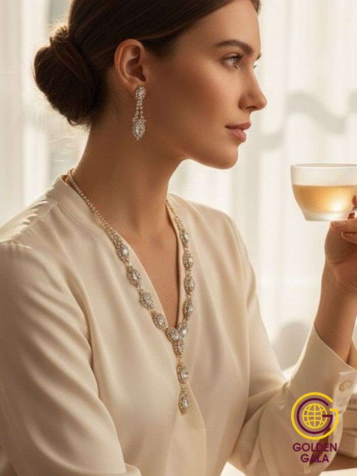 Колье на шею и серьги комплект "Вечерний шарм", качественная женская бижутерия выполнена из гипоаллергенного сплава.