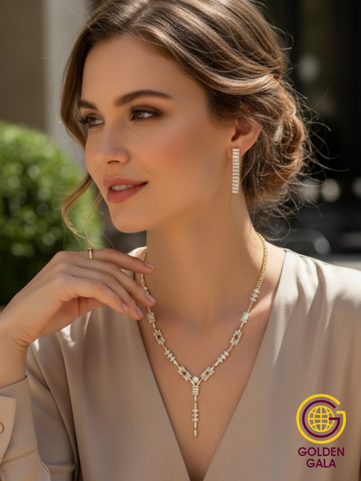 Колье на шею и серьги комплект "Вечерний шарм", качественная женская бижутерия выполнена из гипоаллергенного сплава.