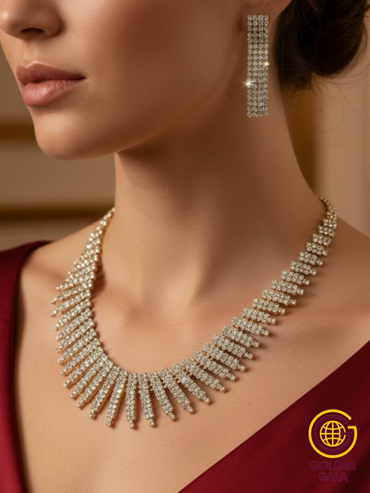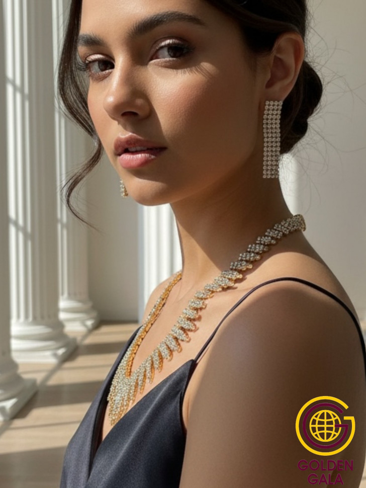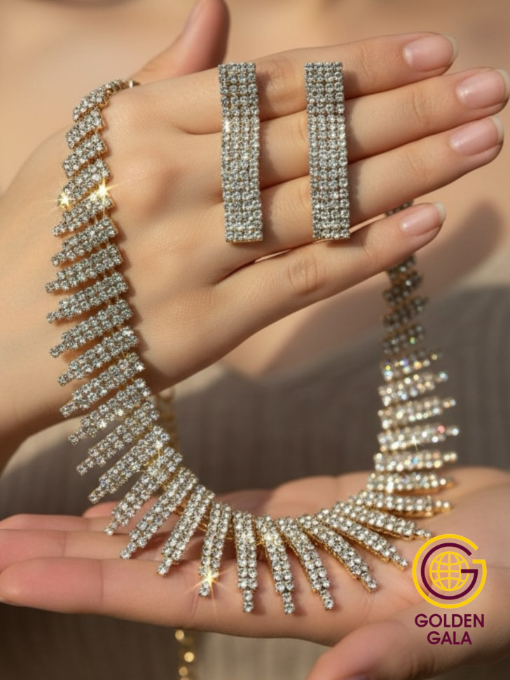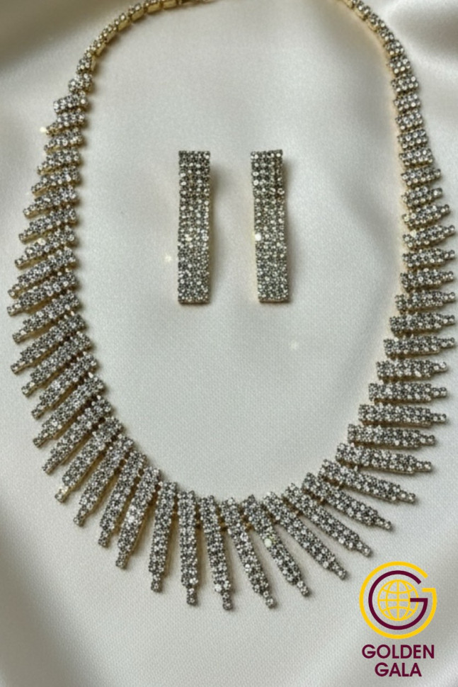 Колье на шею и серьги комплект "Вечерний шарм", качественная женская бижутерия выполнена из гипоаллергенного сплава. Набор колье и серьги имеет оригинальный дизайн, с использованием камней и страз из циркона, которые блестят при любом освещении. Элегантный комплект ожерелье на шею и серьги станет отличным дополнением Вашего образа на свадьбу, выпускной, выступление и любое мероприятие. Колье на шею можно регулировать при помощи цепочки до 50 см, оно может быть длинное или короткое по Вашему вкусу. Серьги с удобным креплением гвоздики имеют длину 4 см. Продуманный и оригинальный образ всегда притягивает взгляды и вызывает восхищение окружающих!
