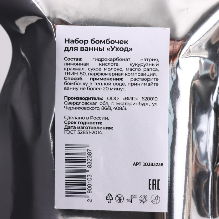 Производитель: Добропаровъ; Габариты: 15 x 10 x 4; Страна: Россия; В боксе: 20 набор; В наборе: 5 набор; Состав: См. на упаковке; Материалы: см. на упаковке; Фасовка: по 1 набор; Индивидуальная упаковка: PVC, пакет; Сертификат: ЕАС; Набор: Да; Цвет: Белый; Для кого: Унисекс; Форма: Шар; В наборе, шт.: 5; Вес, г: 40; Вид упаковки: Пакет zip-lock; Тематика праздника: Универсальная тематика; Адресат: Без адресата; Возраст: Любой; Аромат: Парфюм; Составляющие набора: Бомбочка для ванн; Темпер. ограничение НЕ НИЖЕ ℃: 0; Возраст: Для взрослых, Для детей; Особенности: Без особенностей; Фиксированная цена: Да
