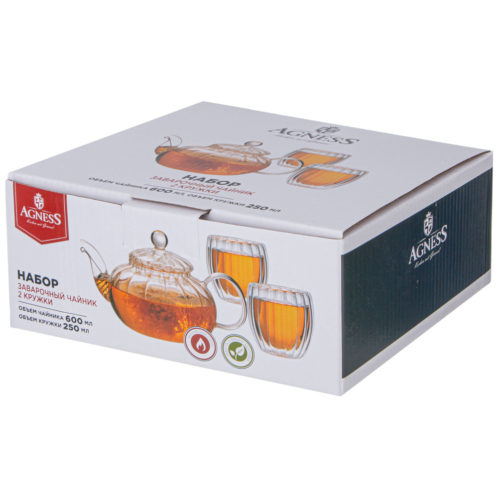 Бренд: Agness; Коллекция/Серия: Agness Agness; Категория: Посуда, Посуда для чая и кофе, Чайники заварочные; Серия: Agness; Материал: Стекло; Фасовка: 1/12; Вес: 0.667 кг; Количество штук в коробке: 1 - 12 шт., 1 - 12 шт; Длина коробки: 23 см; Ширина коробки: 18 см; Высота коробки: 10 см; Страна производства: Китай; Товарная группа: 887 группа Заварочный стеклянный чайник и кружки выполнены в красивой рельефной форме, что позволяет бесконечно долго любоваться процессом заваривания. Благодаря игре света через рельефные стенки напиток смотрится особенно красиво.