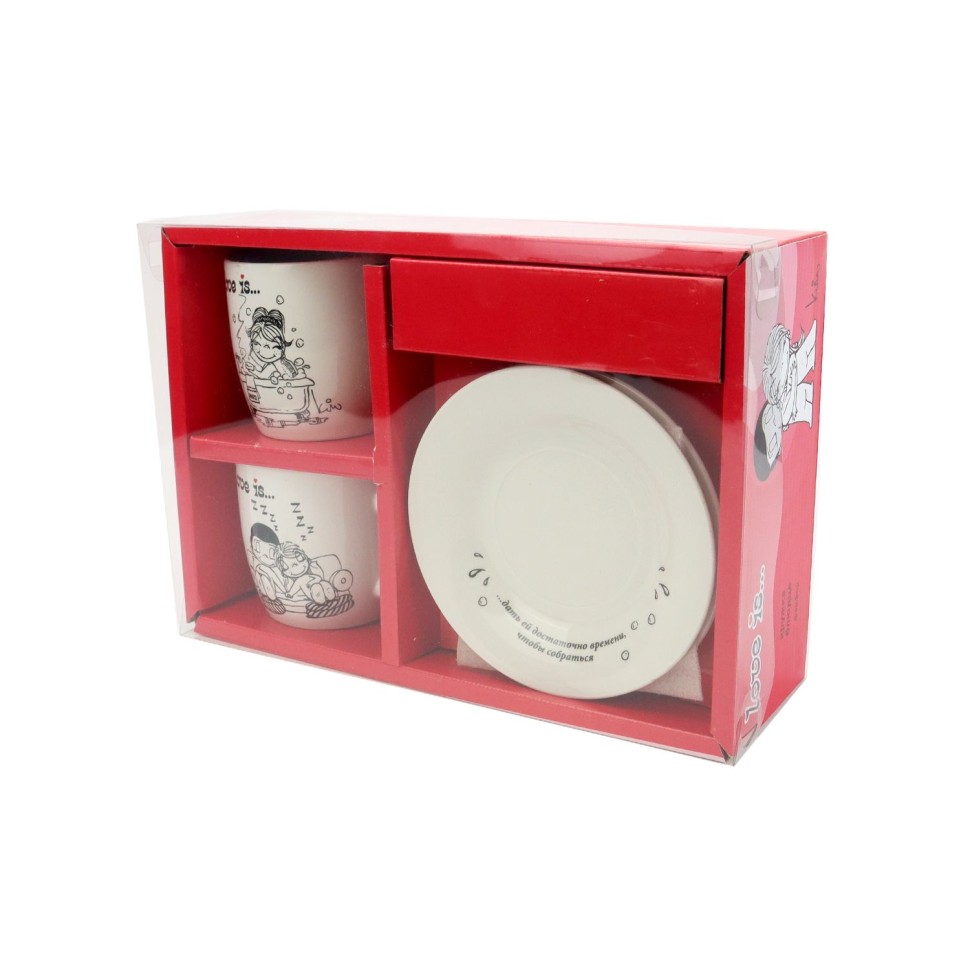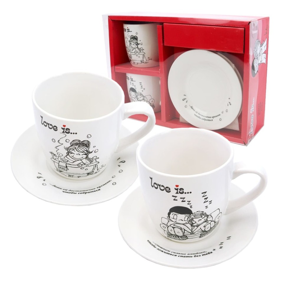 Ширина, см: 9,90 Высота, см: 21,90 Страна производства: Китай Размер упаковки, см: 21.9 × 31.1 × 9.9 Материал: фарфор Штрихкод: 4660311382781 Индивидуальная упаковка: Подарочная коробка Система скидок: Без скидок Набор двух чайных пар в подарочной упаковке "Love is..." (кружка 360 мл, блюдце 15,3 см), 4 предмета, фарфор Пригодно для мытья в посудомоечной машине. Не рекомендуется подвергать изделие длительному воздействию прямых солнечных лучей. Размер: 21,9 x 31,1 x 9,9 см. Вес: 1,083 кг. Комментарии к товару