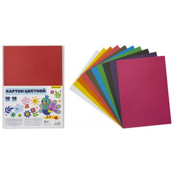 Набор цветного картона А4 10л 10цв "Веселый павлин" ПЭТ (1624185) SILWERHOF