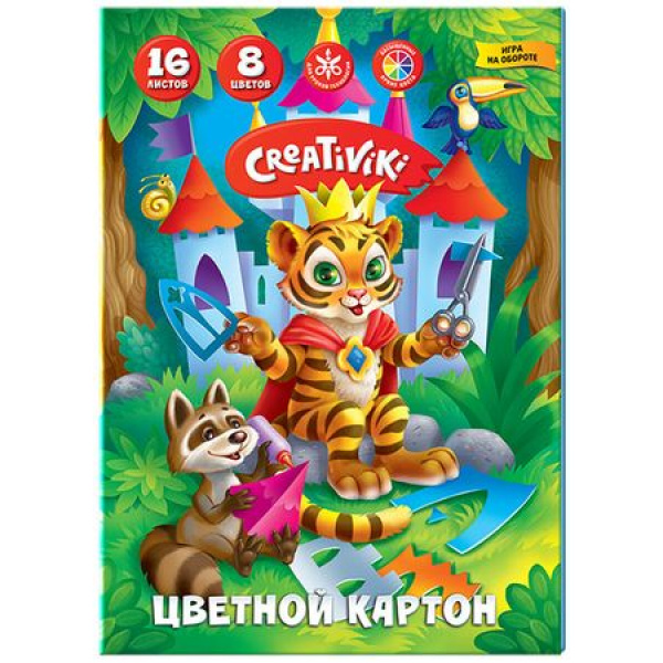 Код товара: 12-111604; Наименование: Набор цветного картона А4 16л 8цв КЦ16Л8ЦКР Creativiki; Упаковка: 20; Страна: Россия; Производитель: Creativiki Картон цветной немелованный Формат листов: А4 Плотность бумаги:190 г/м2 Количество листов:16 Количество цветов: 8