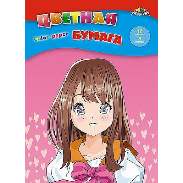Код товара: 12-181155; Наименование: Набор цветной бумаги А4 16л 8цв "Аниме. Девочка" С0005-63 АппликА; Упаковка: 60; Страна: Россия; Производитель: АппликА