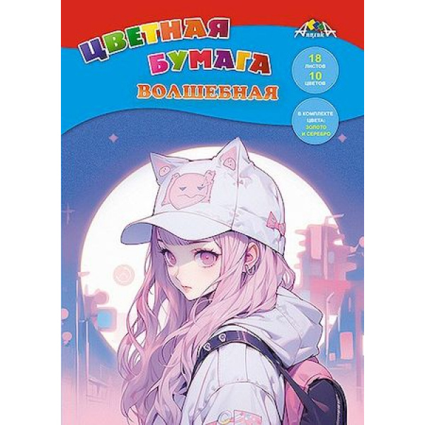 Код товара: 12-180638; Наименование: Набор цветной бумаги волшебной А4 18л 10цв "Аниме. Девочка" С0192-28 АппликА; Упаковка: 60; Страна: Россия; Производитель: АппликА Цветная бумага волшебная, 18 листов, 10 цветов, формат А4, плотность 50 гр/м2. Внутренний блок - офсет №2, двойной прокрас с одной стороны. В наборе цвета: красный, желтый, синий, черный, розовый, оранжевый, зеленый, коричневый и 2 листа мелованной бумаги: золотой и серебряный. Крепление - скоба, обложка - офсетная бумага. Рекомендуется детям от 3 лет.