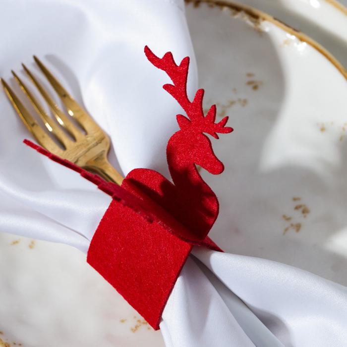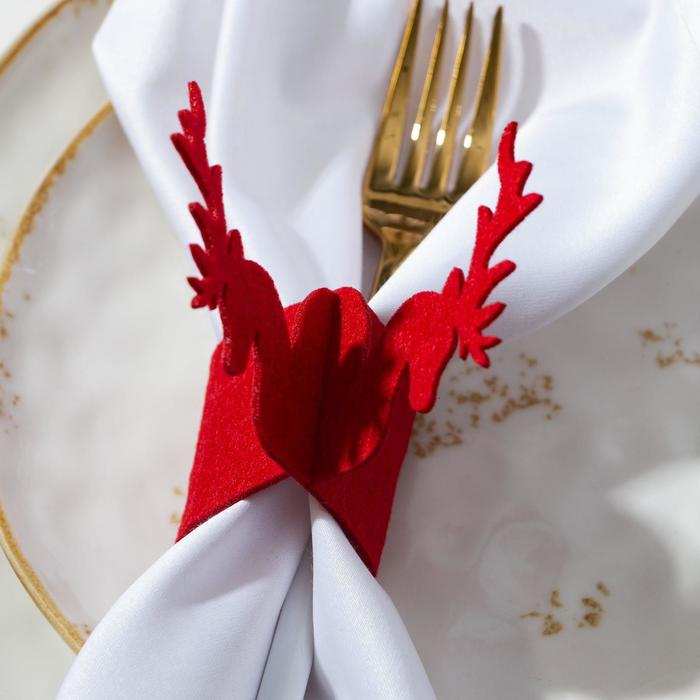 Набор декоративных колец для салфеток «Новогодний олень», 4 шт., d=5 см, 100% п/э, фетр