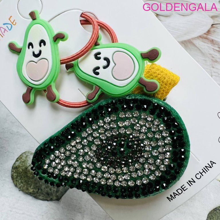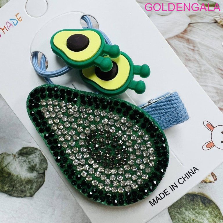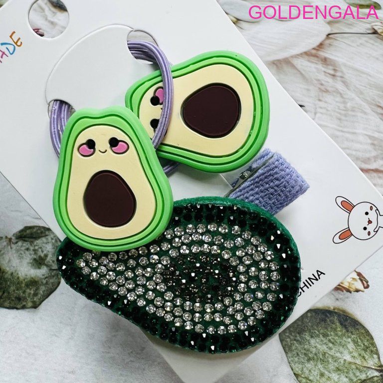 Набор детских аксессуаров для волос Авокадо (Зажим уточка 1 шт+ 2 шт резинки) НД 1. Цена за 6 наборов.