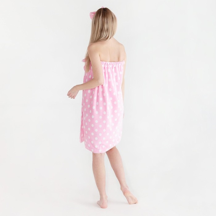 Набор для бани и ванной Этель "Горох" полотенце-парео 75*120 см+повязка, цв.розовый