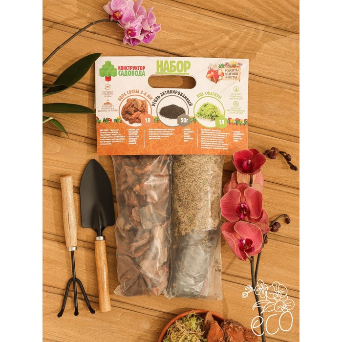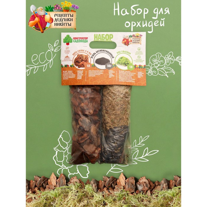 Кора сосновая - добавка для составления субстратов. Применяется в качестве добавки при составлении субстрата, для хранения саженцев и корневищ многолетних растений, мульчирования почвы, укоренения черенков, изготовления опор, висячих корзинок, сухих букетов и композиций.