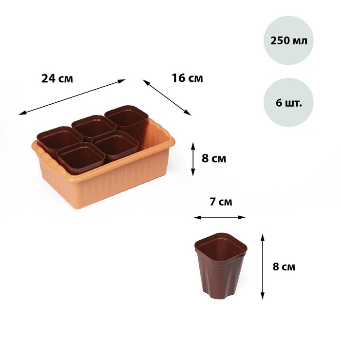 Набор для рассады: стаканы по 250 мл (6 шт.), ящик 25×16 см, МИКС