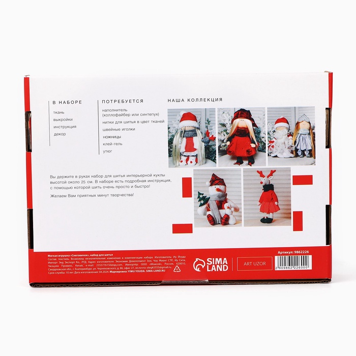 Габариты: 22,5 x 15,5 x 5,5 Страна: Китай В боксе: 40 набор Состав: Бумага, дерево, текстиль Материалы: бумага, дерево, текстиль Фасовка: по 1 набор Индивидуальная упаковка: Цветная картонная коробка Габариты товара: 15,6 см × 22,4 см × 5,2 см Сертификат: Не подлежит сертификации Для кого: Унисекс Возраст: От 7 лет В наборе, шт.: 1 Вид упаковки: Коробка Символ года: Нет Тематика праздника: Новый год Адресат: Без адресата Материал: Текстиль Для создания: Игрушки Составляющие набора: Товары для творчества Возраст: Для взрослых С нашим набором для творчества вы легко создадите красивую и уникальную игрушку. Особенности набора: Чем полезно? Набор развивает мелкую моторику рук, координацию движений, тренирует усидчивость, аккуратность, внимательность, помогает формировать зрительное восприятие и художественный вкус. Желаем вам приятных минут творчества! Комментарии к товару