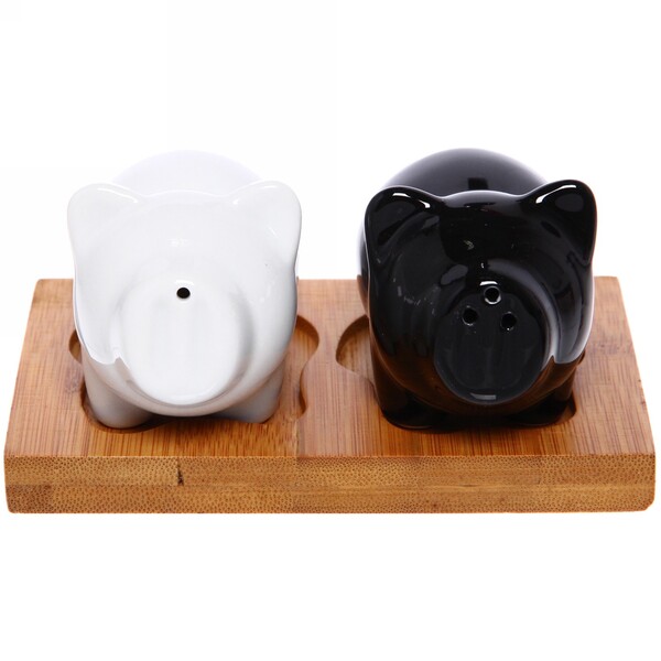 Набор для специй 2шт (перечница+ солонка) на бамбуковой подставке "Черное и белое" поросята