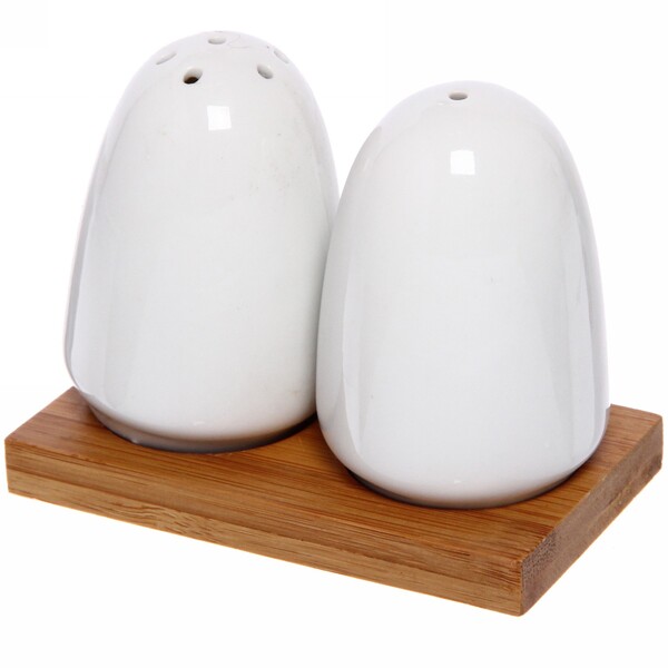Набор для специй 2шт ( перечница+солонка)на бамбуковой подставке "White magic" классика