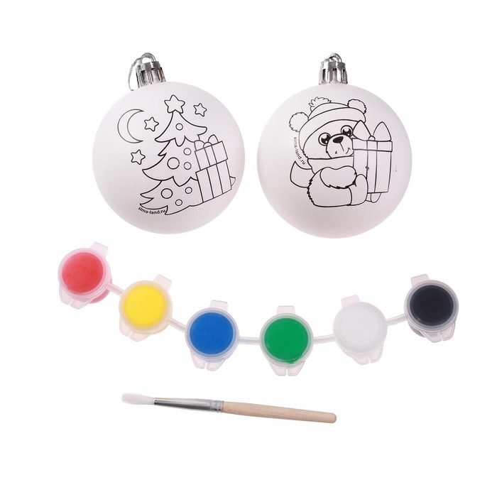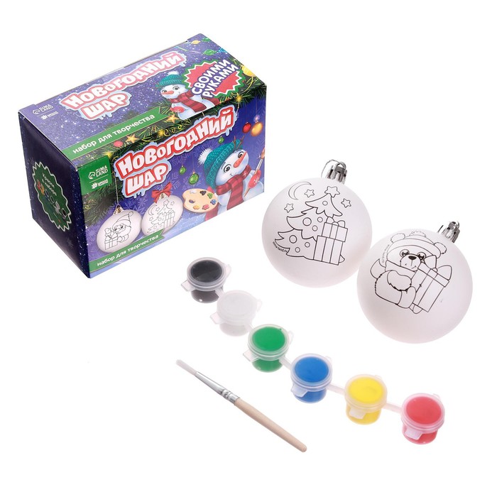 В наборе шары с нанесённым рисунком. Вам остаётся лишь проявить фантазию и раскрасить их на свой вкус. Набор шаров также станет прекрасным подарком друзьям и близким.