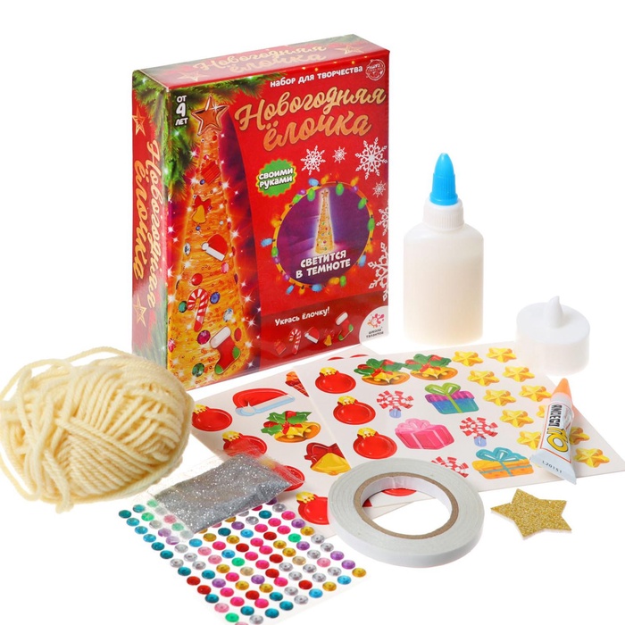 Серия наборов для творчества «Новогодняя ёлочка» предлагает сделать красивое деревце из самых разных материалов: мишуры, фетра, помпонов и даже ниточки.