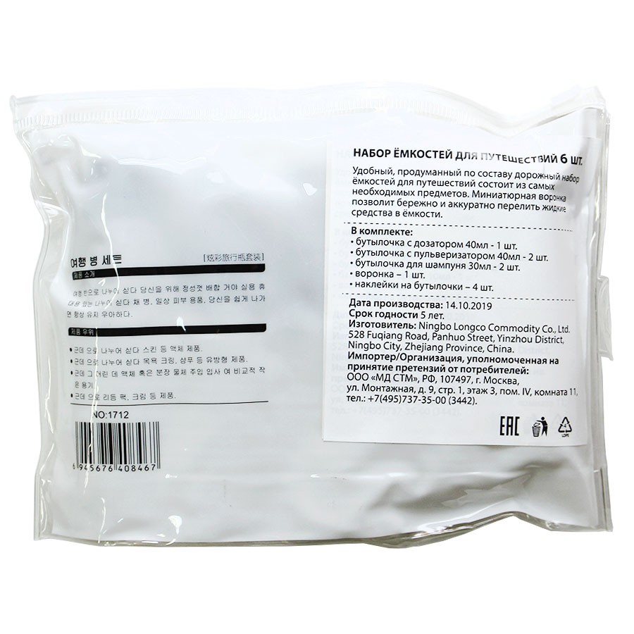 Оригинальность: Оригинал; Страна производитель, на упаковке: Китай Все описание Набор дорожных ёмкостей 6 шт.