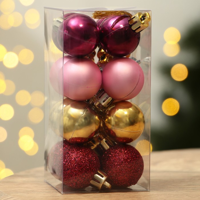 Габариты: 6 x 6 x 12 Страна: Китай В боксе: 168 набор Состав: Пластик Материалы: пластик Фасовка: по 1 набор Индивидуальная упаковка: PVC Габариты товара: 6 см × 6 см × 12 см Сертификат: Не подлежит сертификации Набор: Да Цвет: Розовый, Бордовый, Золотистый Высота, см: 12 Диаметр шара, см: 3 В наборе, шт.: 16 Символ года: Нет Материал: Пластик Стиль: Фьюжн Комментарии к товару