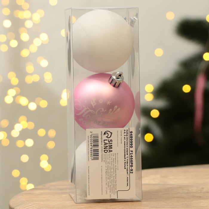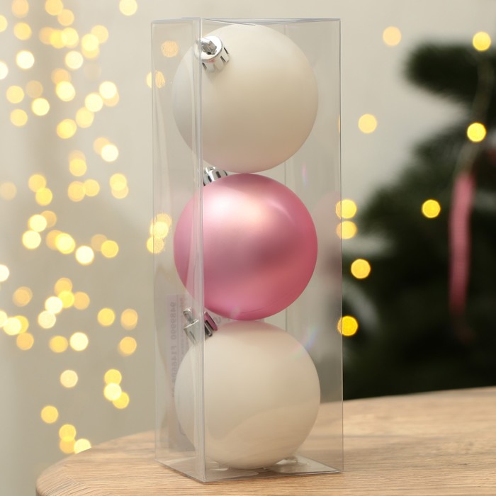 Габариты: 6 x 6 x 18 Страна: Китай В боксе: 126 набор Состав: Пластик Материалы: пластик Фасовка: по 1 набор Индивидуальная упаковка: PVC Габариты товара: 6 см × 6 см × 18 см Сертификат: Не подлежит сертификации Набор: Да Цвет: Белый, Розовый Высота, см: 18 В наборе, шт.: 3 Диаметр шара, см: 6 Символ года: Нет Материал: Пластик Стиль: Фьюжн Комментарии к товару
