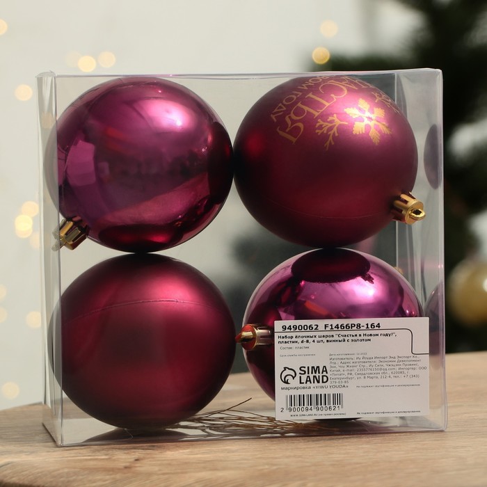 Шары ёлочные «Счастья в Новом году!», пластик, d=8, 4 шт., винные