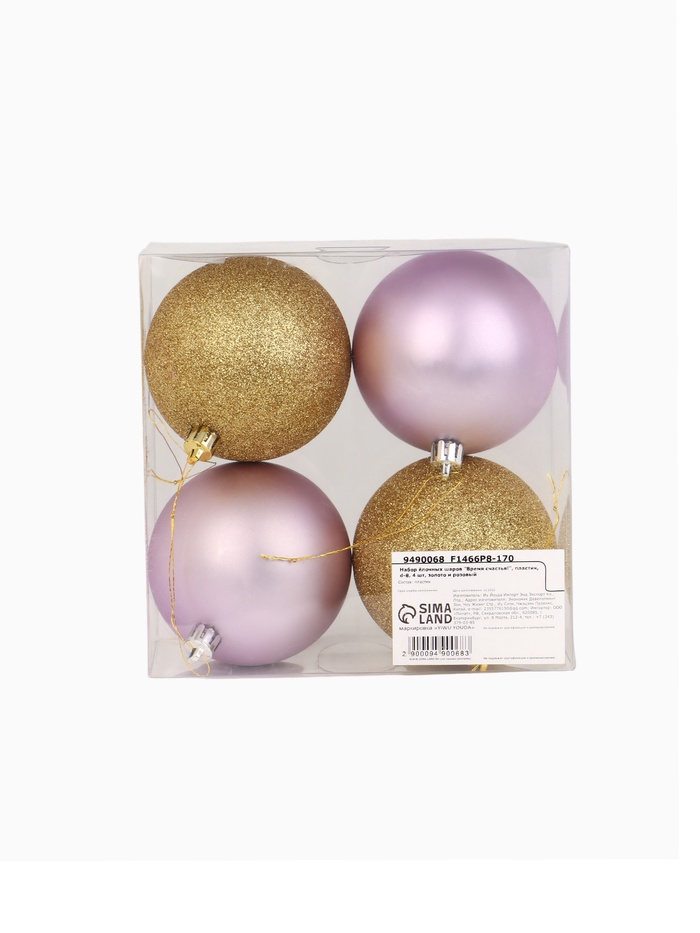 Габариты: 16 x 16 x 8 Страна: Китай В боксе: 45 набор Состав: Пластик Материалы: пластик Фасовка: по 1 набор Индивидуальная упаковка: Пластиковая коробка Габариты товара: 16 см × 8 см × 16 см Сертификат: Не подлежит сертификации Набор: Да Цвет: Розовый, Золотистый Высота, см: 16 В наборе, шт.: 4 Диаметр шара, см: 8 Символ года: Нет Материал: Пластик Стиль: Фьюжн Комментарии к товару