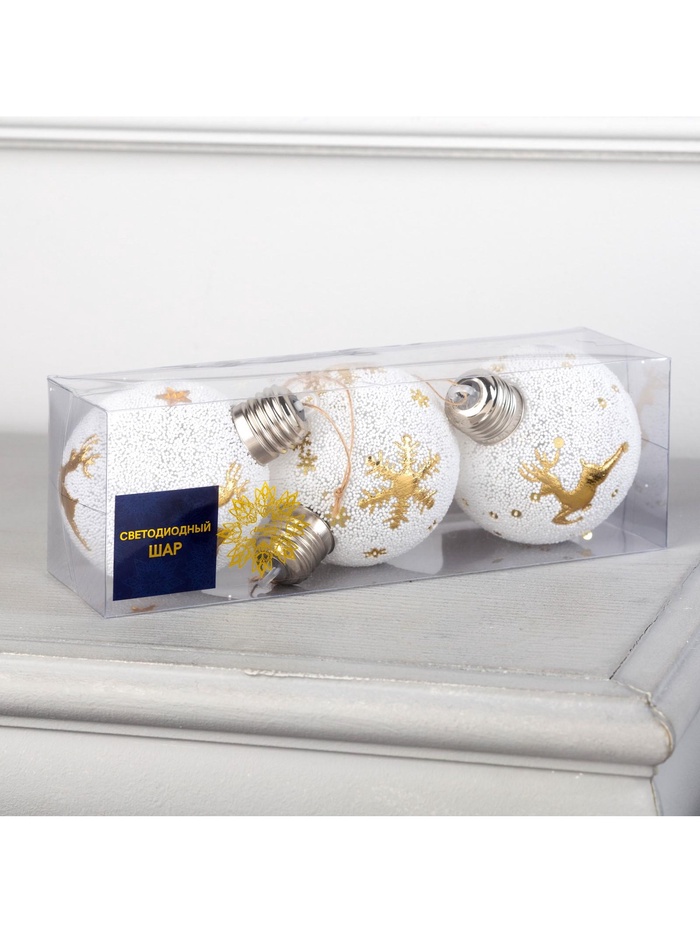Производитель: Luazon Lighting; Габариты: 23,5 x 8 x 8; Страна: Китай; В боксе: 96 набор; В наборе: 3 набор; Состав: Батарейка, металл, пластик; Материалы: батарейка, металл, пластик; Фасовка: по 1 набор; Индивидуальная упаковка: PVC; Сертификат: Не подлежит сертификации; Цвет свечения: Тёплый белый; Набор: Да; Цвет: Белый; Количество светодиодов: 1; В наборе, шт.: 3; Количество батареек: 3; Гарантийный срок, мес.: 6; Диаметр шара, см: 8; Символ года: Нет; Тематика праздника: Новый год; Материал: Пластик; Типоразмер батареек: LR44 (V13GA, AG13, LR1154, SR44); Тип питания: От батареек; Стиль: Советский; Фиксированная цена: Да