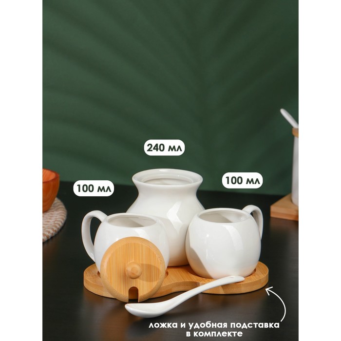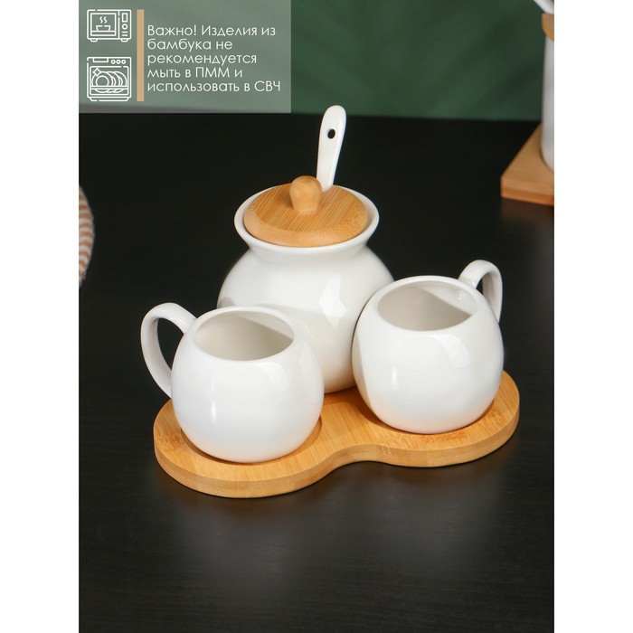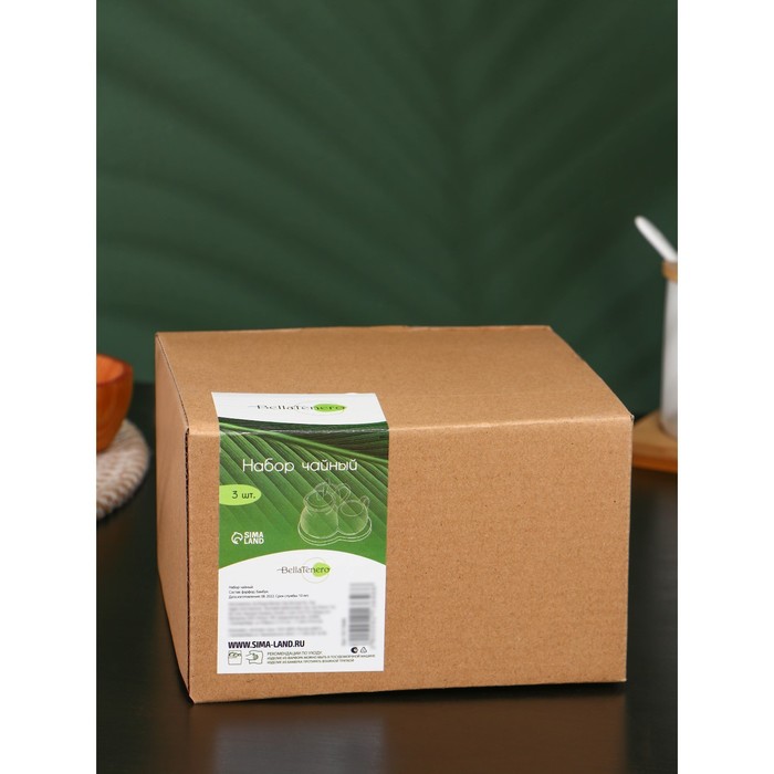 Производитель: BellaTenero; Габариты: 16 x 16 x 10; Страна: Китай; В боксе: 12 набор; Состав: Бамбук, фарфор; Материалы: бамбук, фарфор; Фасовка: по 1 набор; Индивидуальная упаковка: Картонная коробка; Габариты товара: 17 см × 14,5 см × 11 см; Сертификат: СТР; Набор: Да; Цвет: Белый; Количество персон: 2; В наборе, шт.: 4; Объём, мл: 100, 240; Тематика: Однотонная; Рисунок: Нет; Крышка: Да; Материал крышки: Бамбук; Материал: Фарфор; Можно мыть в посудомоечной машине: Да; Можно использовать в СВЧ-печи: Да; Текстура: Гладкая; Особенности: На подставке; Матовая поверхность: Нет