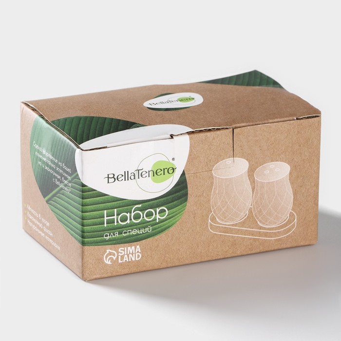 Набор для специй BellaTenero изготовлен из качественного фарфора. Кухонные изделия из фарфора отличаются прочностью и надёжностью, устойчивы к появлению царапин и резким перепадам температур. Благодаря оригинальному дизайну набор отлично впишется в интерьер вашей кухни и станет настоящей изюминкой при сервировке.