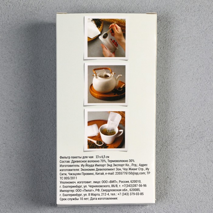 Габариты: 14,5 x 7,5 x 3 Страна: Китай В боксе: 388 набор В наборе: 100 набор Состав: Термоволокно 30%, древесная целлюлоза 70% Материалы: термоволокно, Древесная целлюлоза Фасовка: по 1 набор Индивидуальная упаковка: Цветная картонная коробка Габариты товара: 0,1 см × 6,5 см × 13 см Сертификат: Не подлежит сертификации Цвет: Белый Рекомендуемая нагрузка, кг: 0,1 В упаковке, шт.: 100 Тематика: Однотонная Рисунок: Нет Символ года: Нет Тематика праздника: Универсальная тематика Материал: Целлюлоза, Термоволокно Отделка пакета: Без отделки Расширение: Без складки Вид ручки: Без ручки Форма пакета: Вертикальный Особенности: Креативный Фильтр-пакеты для заваривания чая и трав - незаменимый помощник на кухне и в баре. Пакеты экономят время и воду. При их использовании кухня остаётся чистой. Одноразовые пакеты для чая – это очень удобно нет чаинок, пакеты легко удаляются из посуды, также их можно брать с собой вместе с любимым чаем или сбором трав! Пакетики сделаны из пеньки, целлюлозы и термоволокна. Отбелены кислородом. Сетчатая структура создаёт сочетание прочности и тонкости материала, что обеспечивает быстрое заваривание, сохраняя относительную прочность при намокании. Способ применения: в пакетик положите необходимое вам количество чая. Закройте пакетик методом скручивания или заведите его кончик под крышку, залейте кипятком, дайте настояться, аккуратно уберите пакетик с содержимым. Комментарии к товару