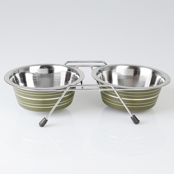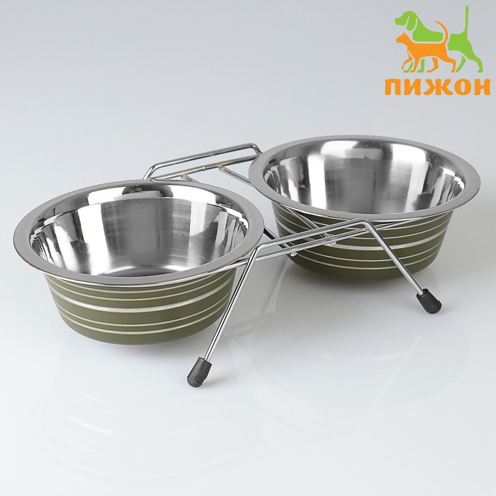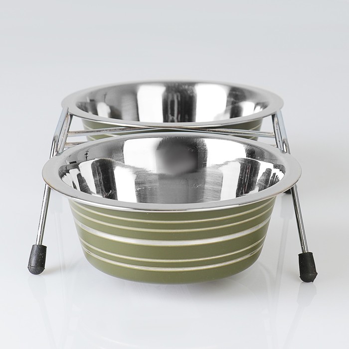 Набор из двух мисок изготовленных из качественной нержавеющей стали, которые предназначены для кормления домашних животных.