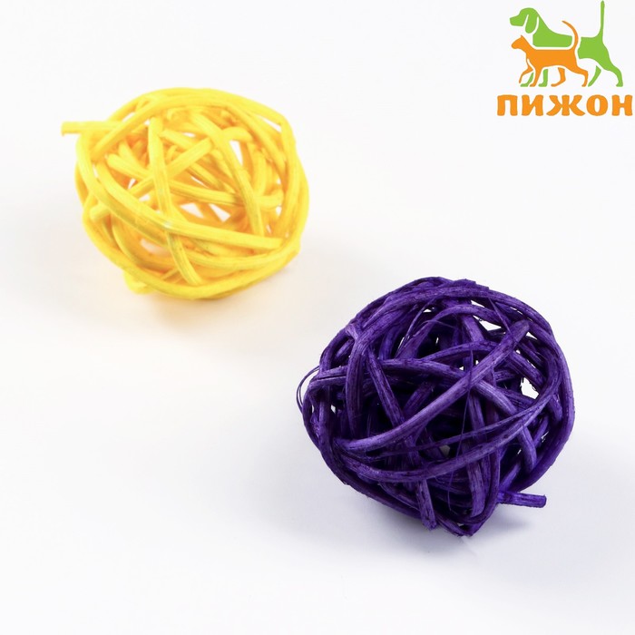 Набор из 2 плетёных шариков из лозы без бубенчиков, 3 см, фиолетовый/желтый