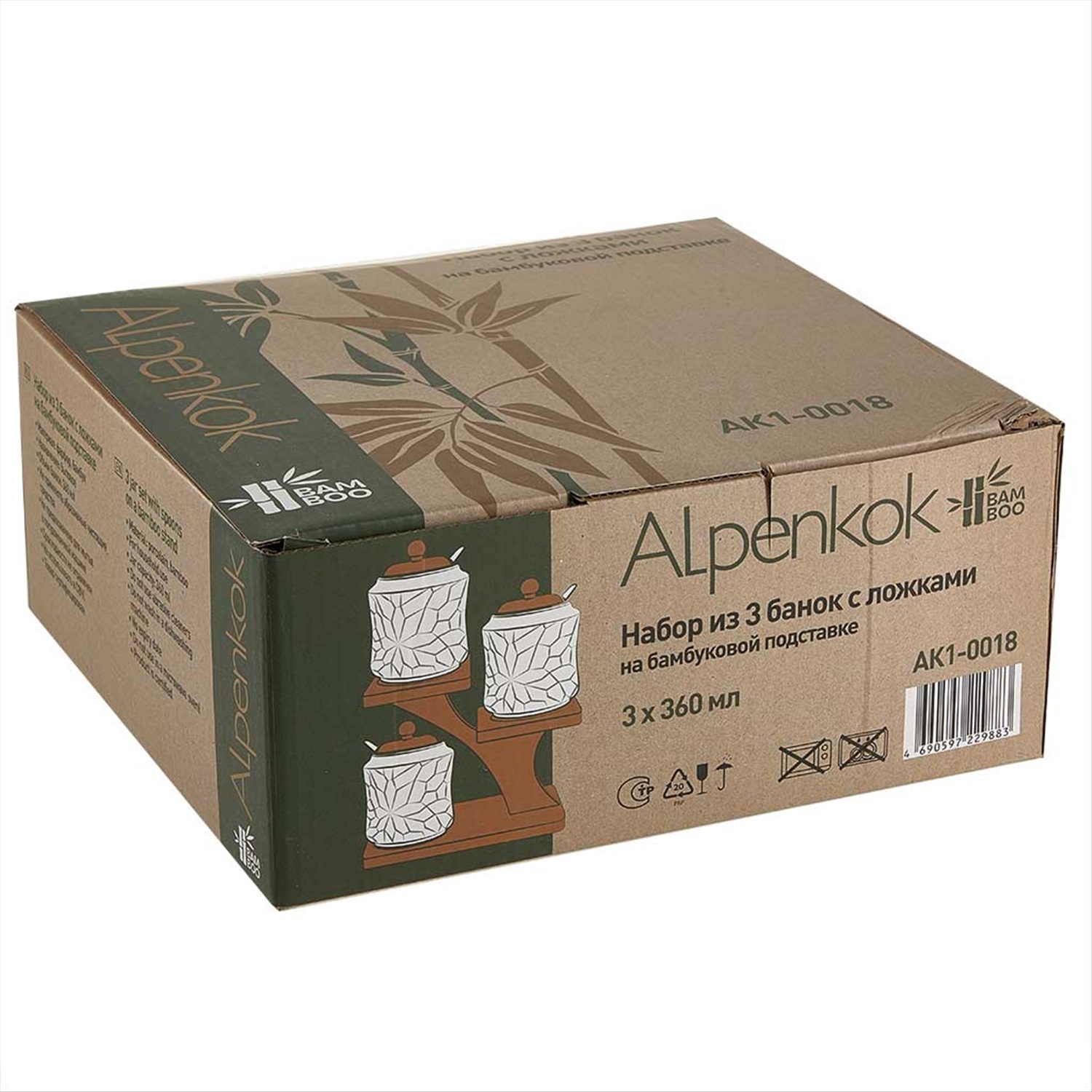 * Набор фарфоровых банок с бамбуковыми крышками и фарфоровыми ложками на бамбуковой подставке