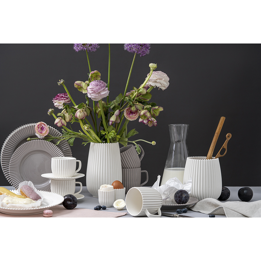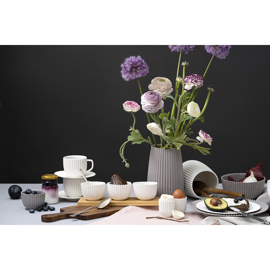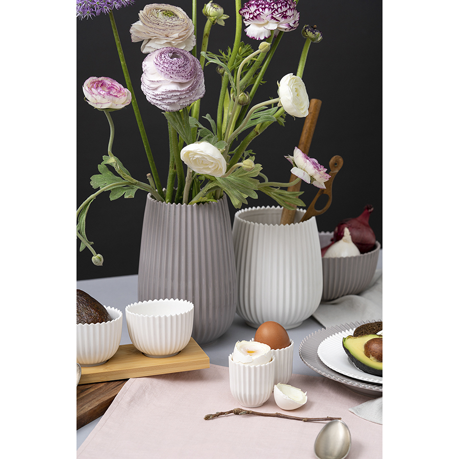 Изящные белые подставки для яиц наверняка понравятся тем, кто считает завтрак самым главным приемом пищи и хочет, чтобы он был безупречным даже в будний день. Подставки изготовлены из фарфора и имеют рифленую поверхность c оригинальным зубчатым краем — это фирменная черта коллекции Edge. В набор входят две подставки, которые при желании можно дополнить чашками и тарелками с таким же дизайном.