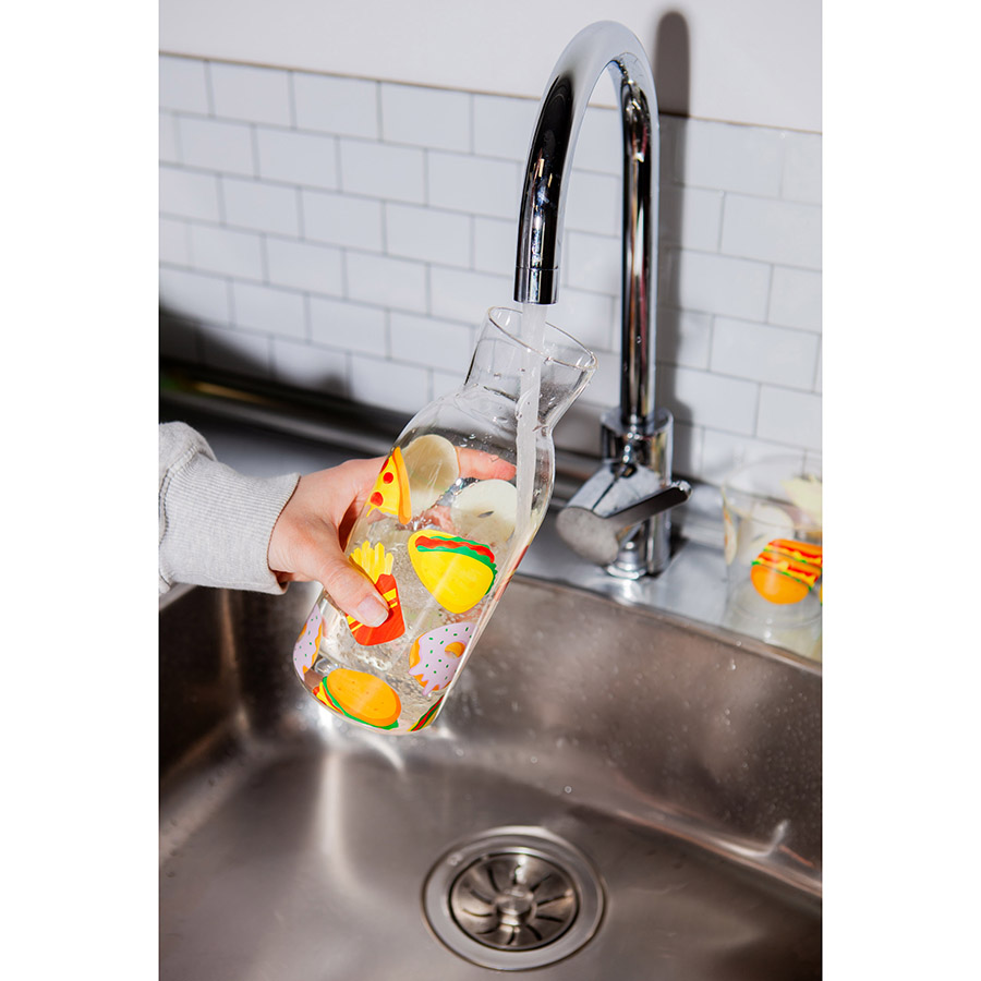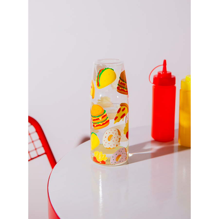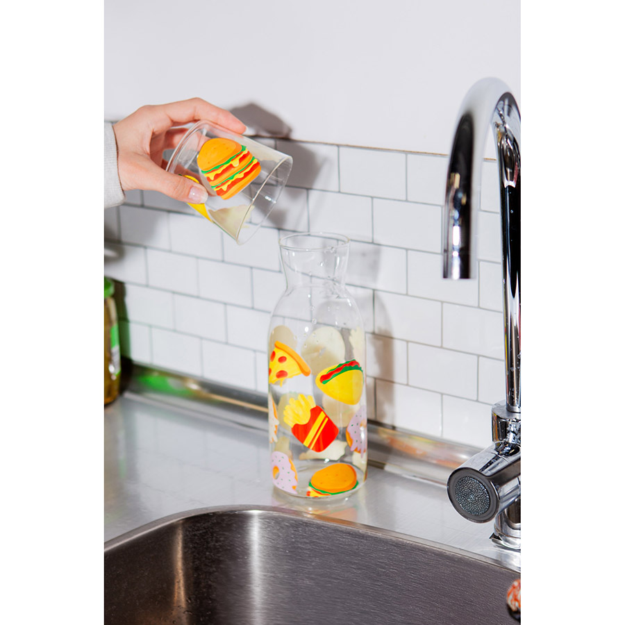 Набор из графина и стакана Fast Food добавит в любую сервировку яркие нотки, идеально подойдет для воды и других холодных напитков.