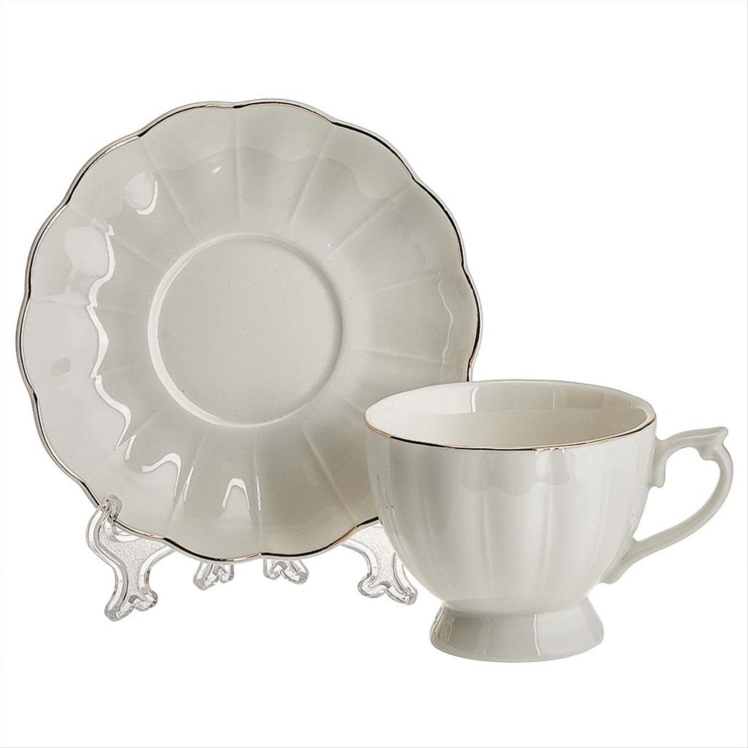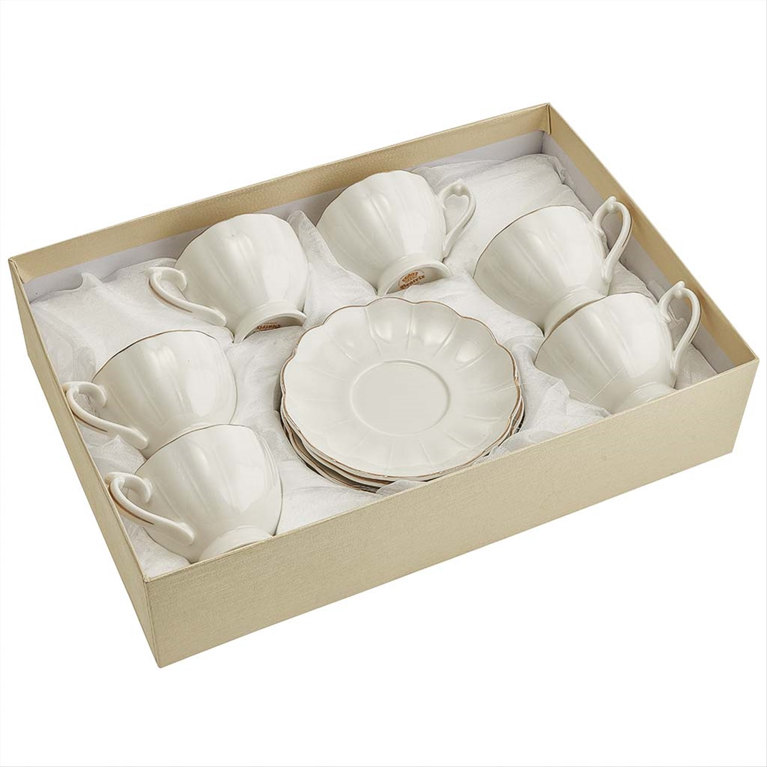 * Набор кофейный из высококачественного белого фарфора с рельефным рисунком и золотой обводкой