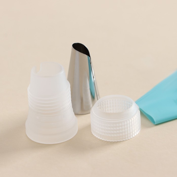 Набор: кондитерский мешок - 1 шт; адаптер для насадок - 1 шт; насадки кондитерские - 4 шт.