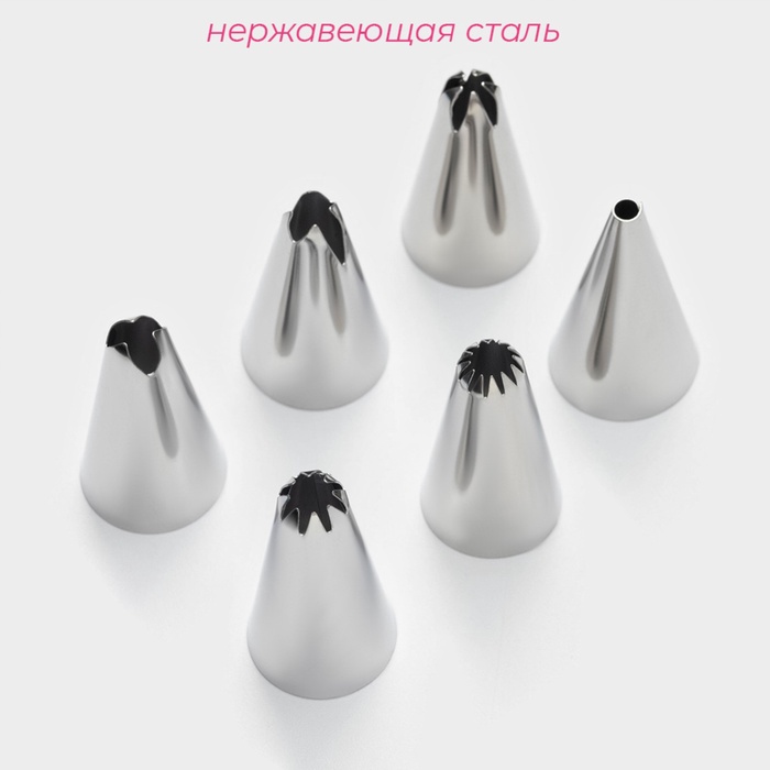 Набор предназначен для украшения выпечки и готовых кондитерских изделий. Наполните мешок кремом, выберите насадку — и приступайте к созданию кулинарного шедевра!